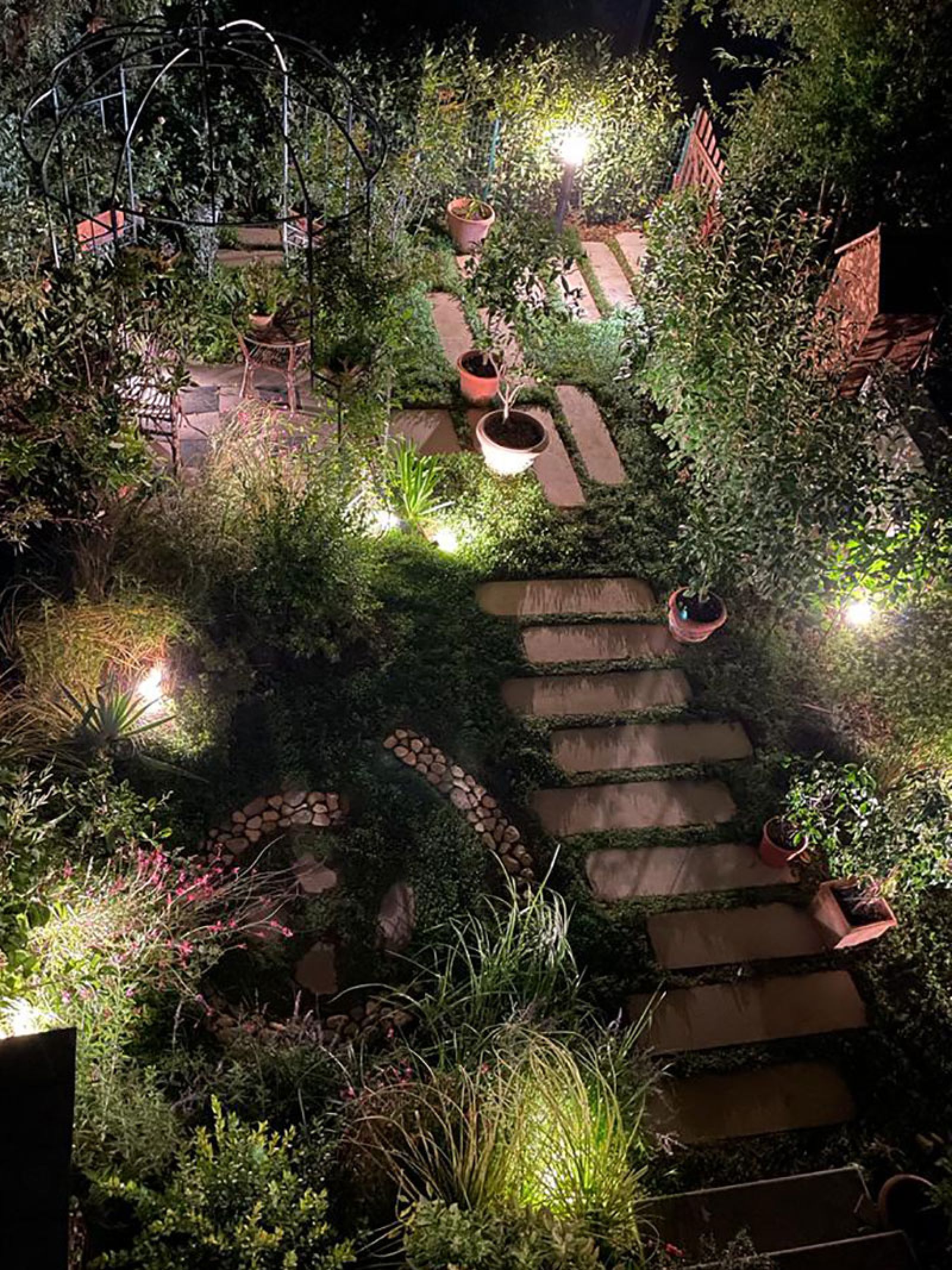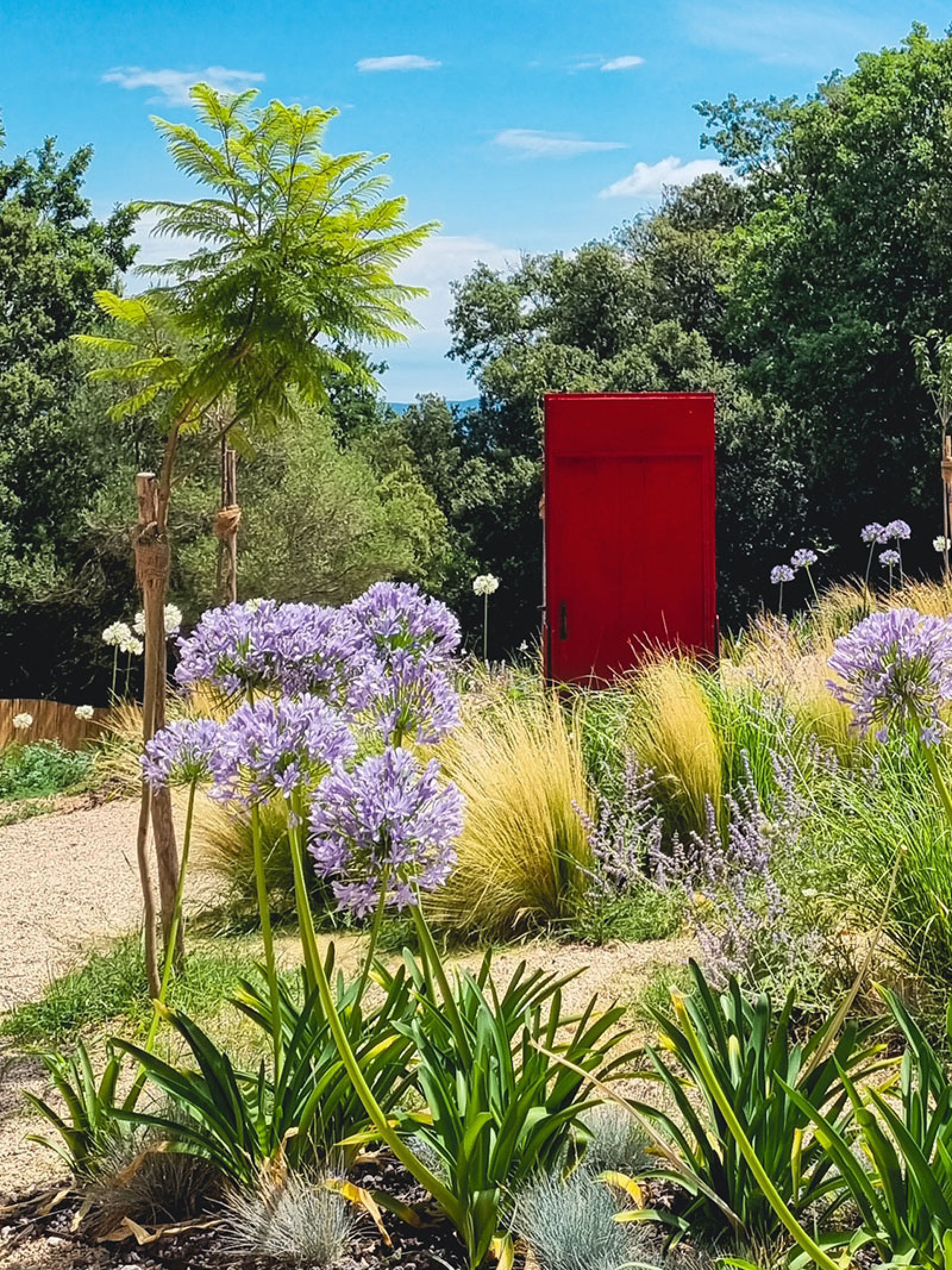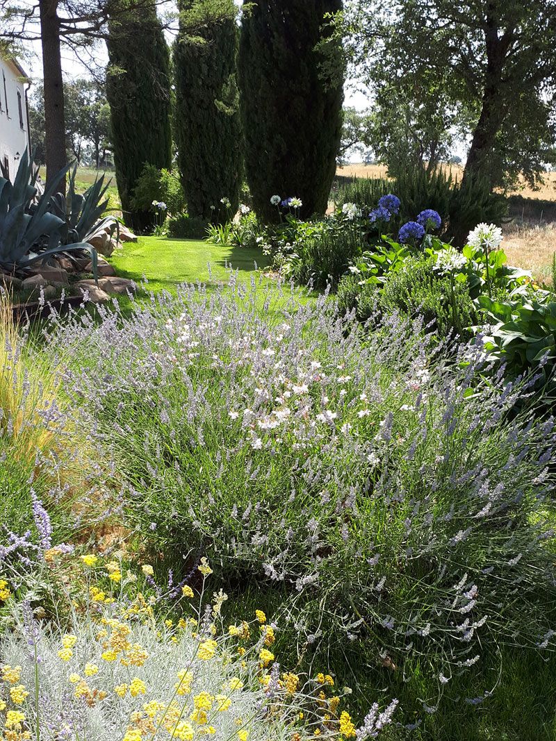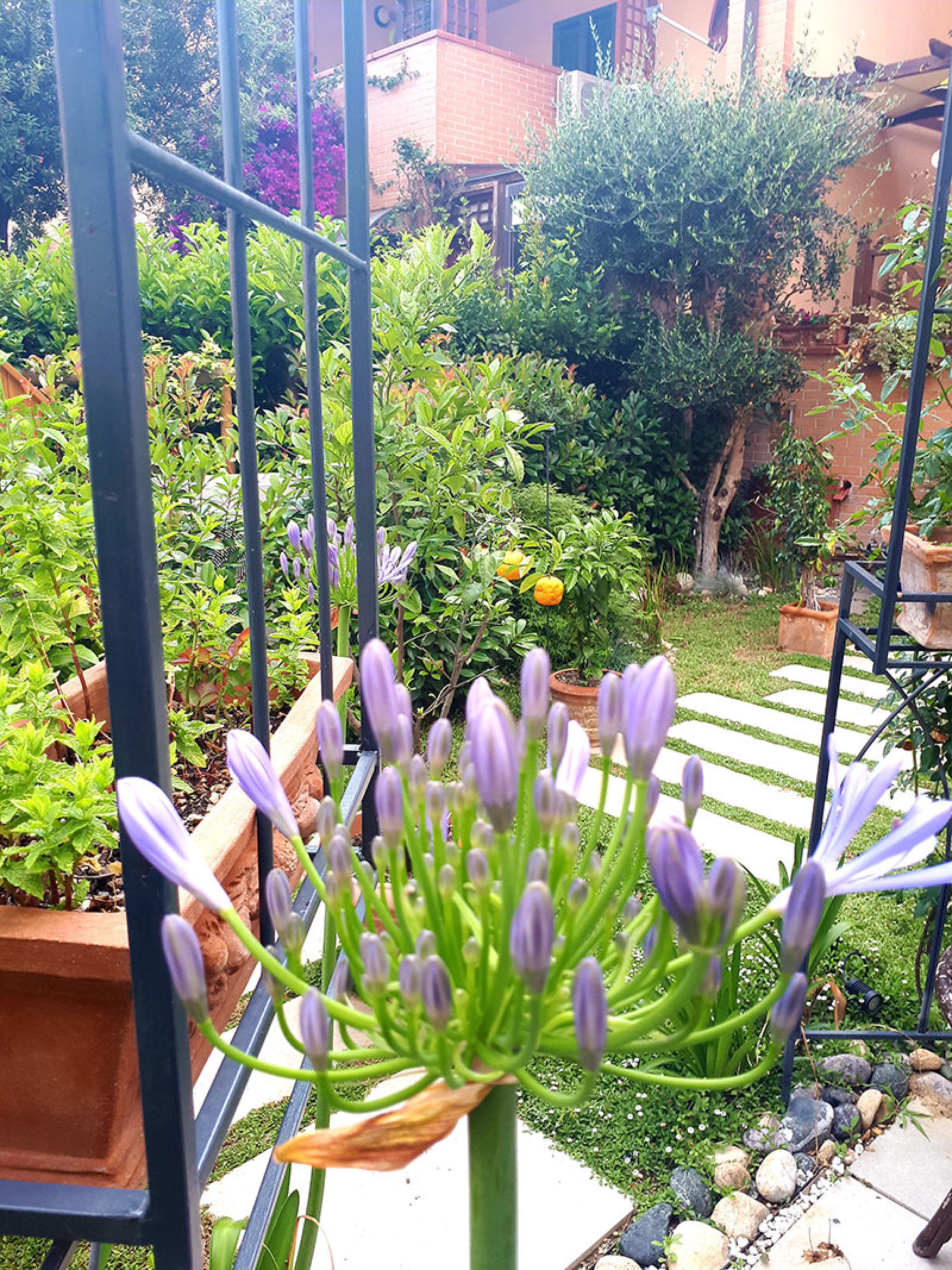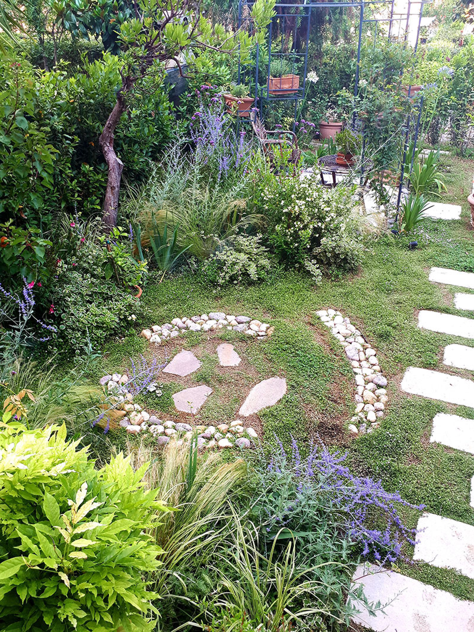 Il “Giardino mediterraneo” è stato realizzato per una villa della Versilia e si caratterizza per la scala lignea sagomata lungo un versante che consente di accedere alla piscina, tra specie mediterranee e pergolati di Glicine.