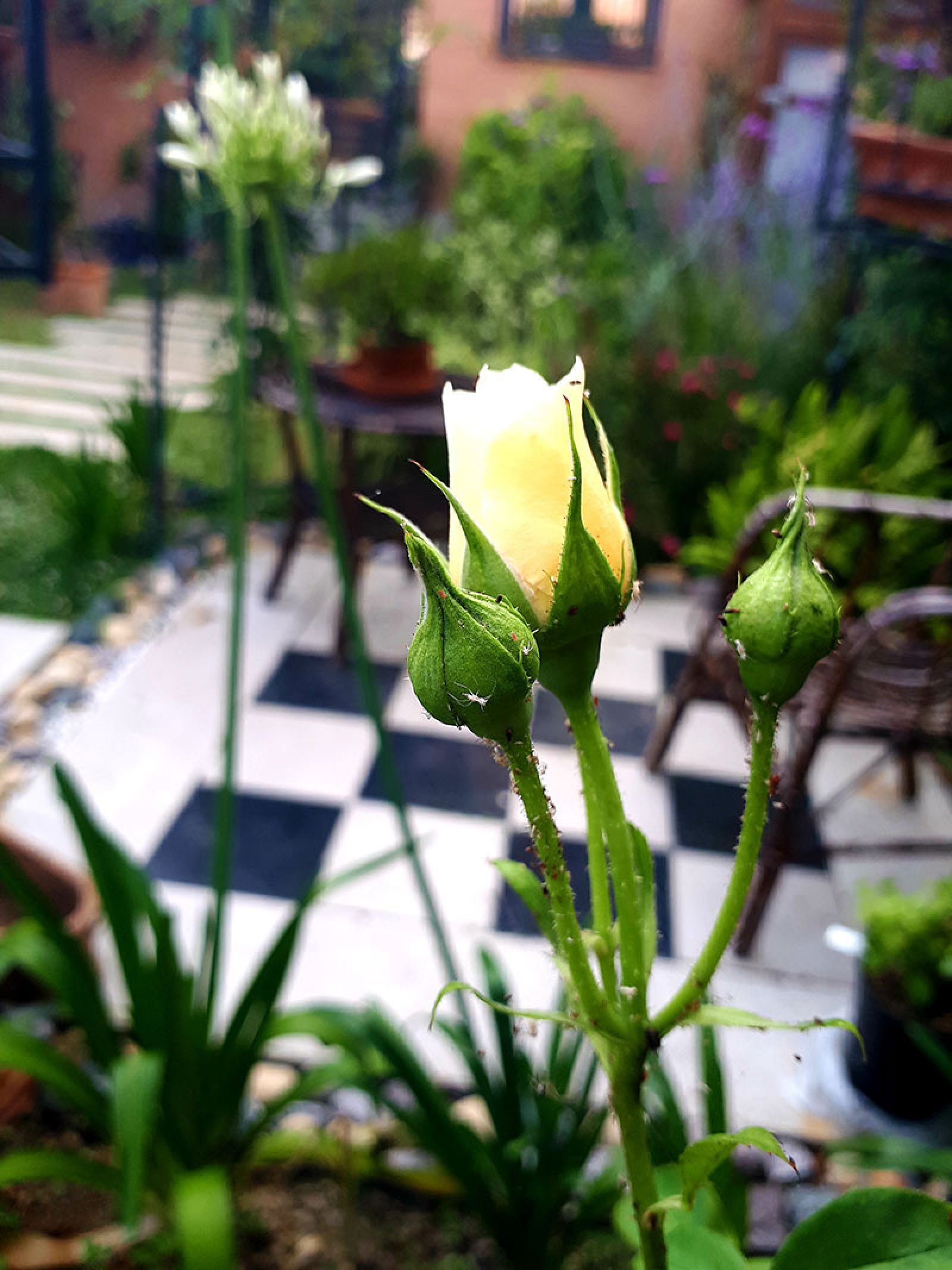 Tra la simbolica purezza dell’acqua e i cromatismi purpurei del regno del Fuoco, si snodano le linee spiraliformi che conducono all’abbraccio familiare, dove convergono le energiche forze di Amore e Unione. Al centro della composizione si giunge attraverso un suggestivo sentiero di Rose, che si snoda tra pergolati fioriti e angoli di sosta, tra colori e profumi.