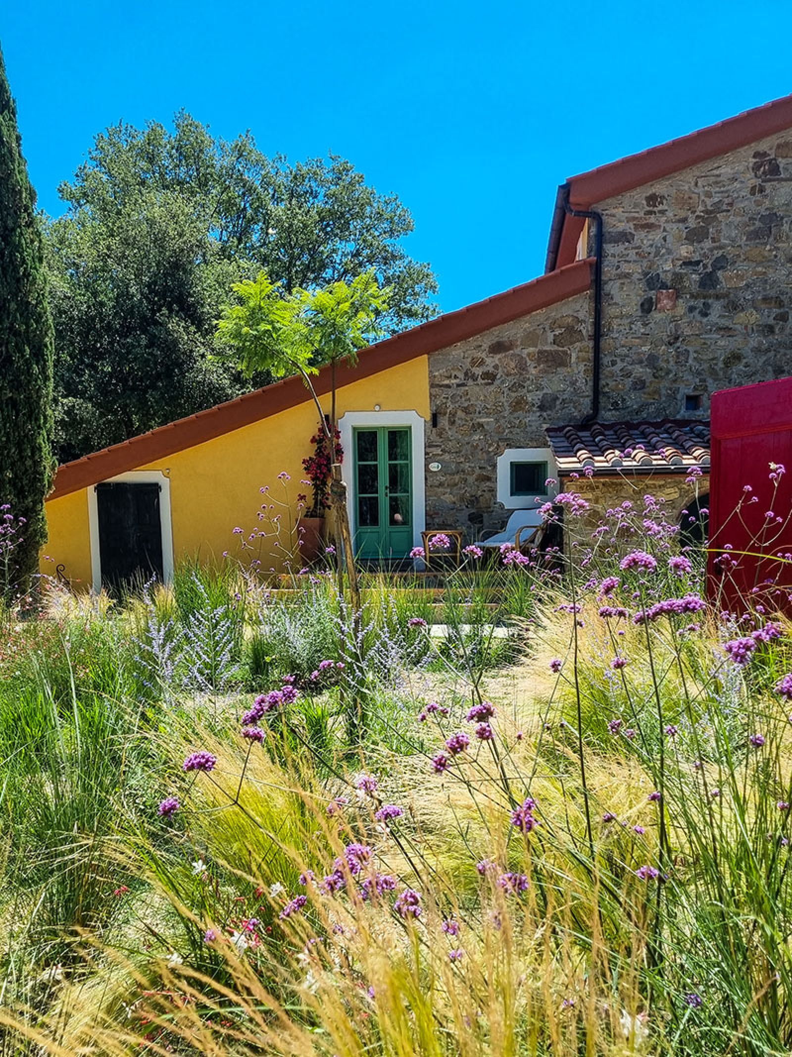 Il “Giardino delle terrazze” è stato realizzato nel Mugello, in una proprietà privata immersa nella natura, in cui è presente un’antica torre di avvistamento, ristrutturata ad abitazione. L’area esterna, sul fronte della torre, era un declivio inutilizzabile che, attraverso una serie muri in pietra dall’andamento sinuoso è stato trasformato in terrazze, trasformando completamente l’immagine dell’area e rendendo funzionale ogni angolo del giardino.